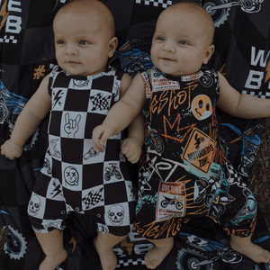 Introducing our Dirt Bike Rompers, the perfect blend of style and comfort for your little one. Crafted with 95% bamboo and 5% spandex, these rompers are not only soft but also durable, making them ideal for active little ones. The tank top/short combo design adds a trendy touch, while the dirt bike print brings a sense of adventure to any race day.