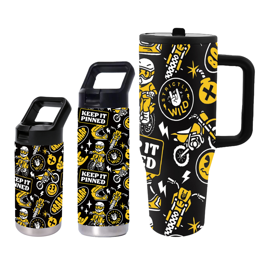 Built for long race days, hot track weekends, and full-send dirt bike life, our insulated cups are made to keep up with real moto families. Featuring bold, one-of-a-kind Strictly Wild designs and durable double wall stainless steel construction, these are not your average water bottles.