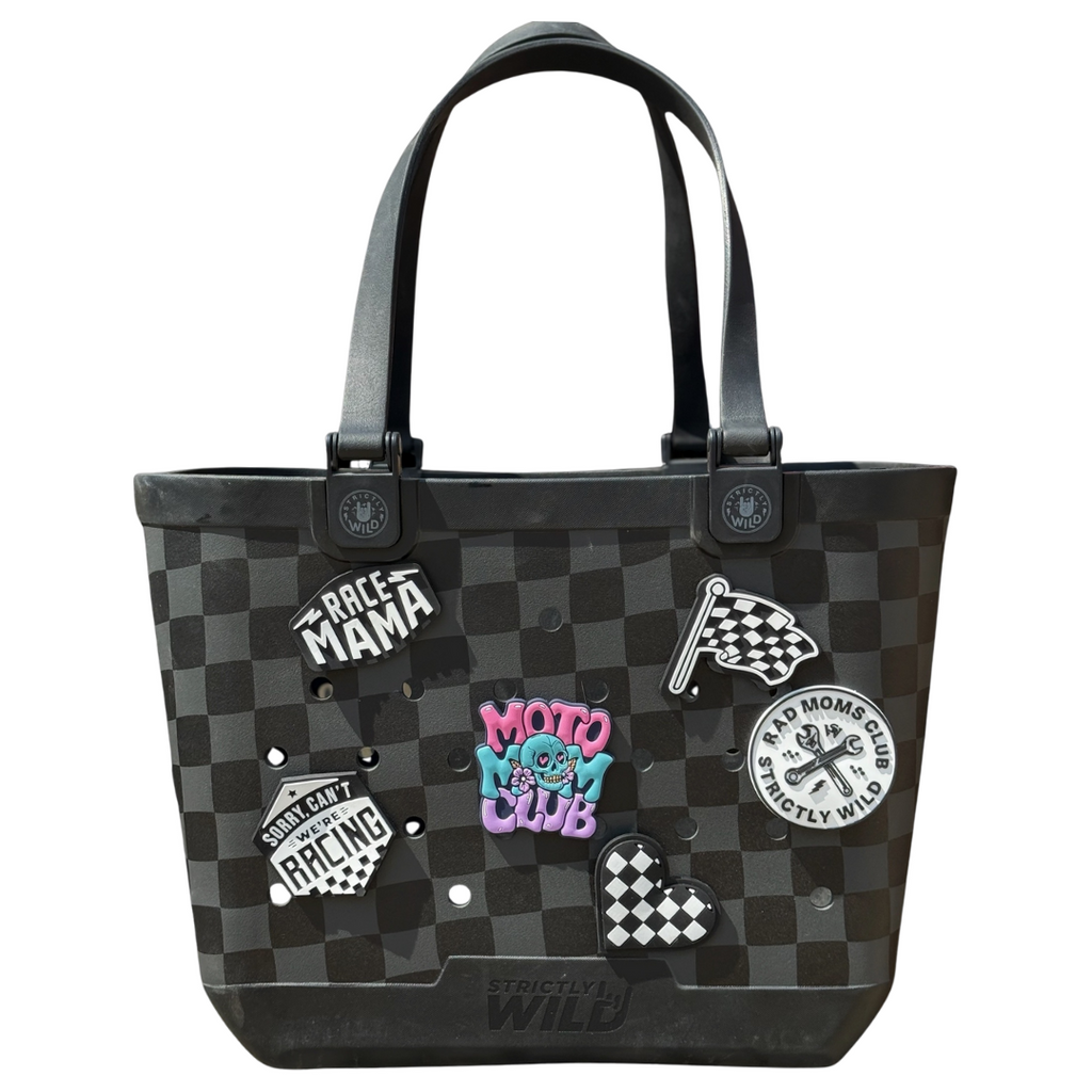 Introducing our Moto Tote Charms - wayyyy bigger and bolder than ever, these rubber charms are designed to perfectly complement our Moto Tote without any additional accessories needed to fit. You know our croc charms right?! Think 5-10x as big! Add a touch of excitement to race day with these rad charms that bring extra flair to your moto tote. Each charm is sold separately, allowing you to mix and match to create your own unique look. Elevate your tote game with these eye-catching race day accessories!