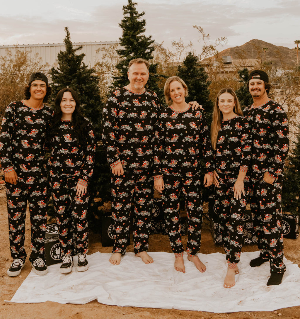Back by popular demand is our our "Santas Speedy Sleight" Christmas pajamas, perfect for racing families and guaranteed to bring joy to Christmas morning. This set includes a long sleeve top and pants made from the softest bamboo fabric—providing unparalleled comfort for toddlers and youth alike.